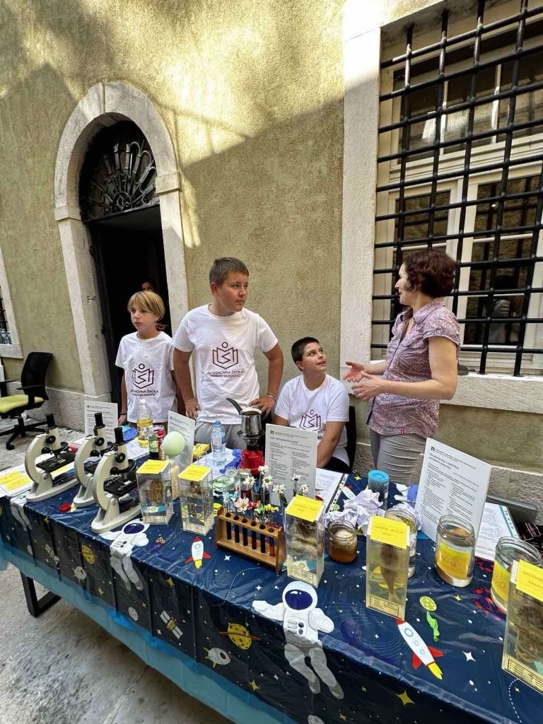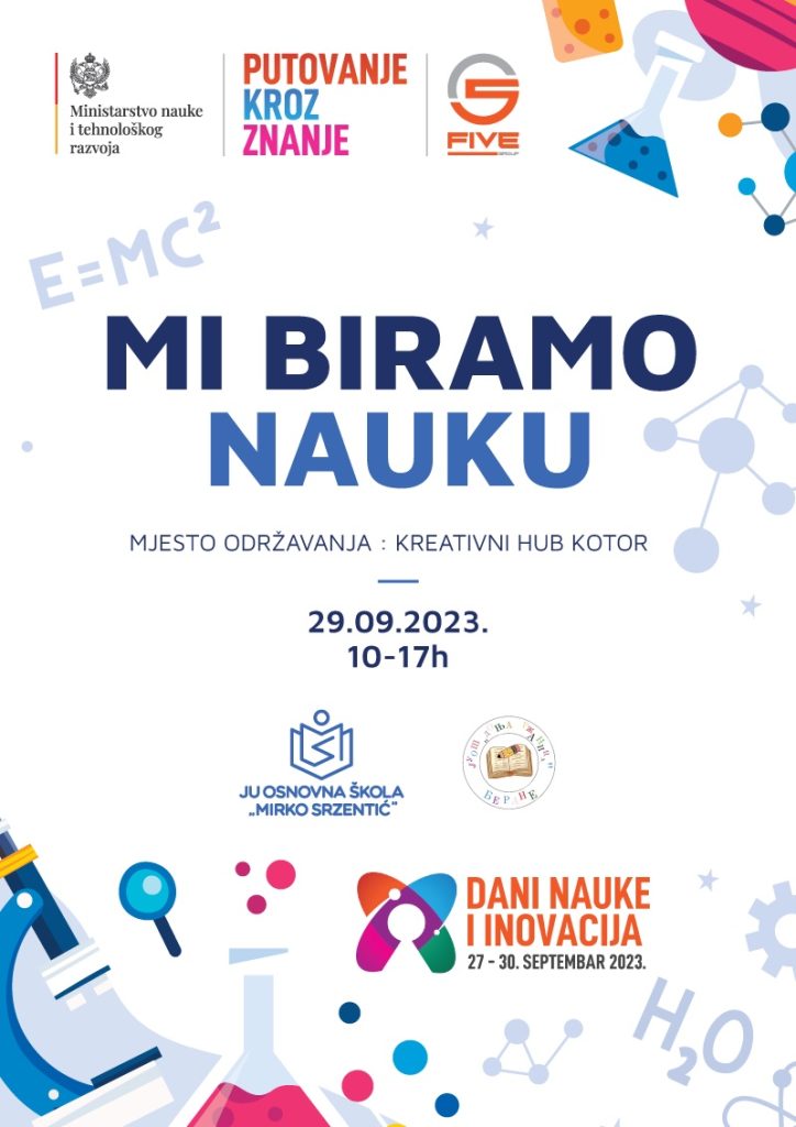 Opis: Projekat je predstavljen u okviru Festivala Dani nauke i inovacija 2023, koji se održao u Kreativnom Hub-u u Kotoru. Cilj projekta je da učenici kroz eksperimente, istraživanja i praktične aktivnosti razviju interesovanje za naučne discipline. Tehnološke inovacije, poput korišćenja teleskopa za posmatranje nebeskih tijela, VR naočara za simulaciju naučnih procesa, 3D štampača za izradu prototipova, kao i robota za interaktivno učenje, dodatno su obogatile obrazovno iskustvo. Učenici su na Festivalu izvodili naučne eksperimente, koristeći savremene alate i opremu kako bi teorijska znanja primijenili u praksi. Metodološke inovacije uključuju upotrebu istraživačkih metoda koje povezuju teoriju sa svakodnevnim problemima, omogućavajući učenicima da kroz projektno učenje steknu funkcionalno znanje. Pedagoške inovacije obuhvataju timski rad, ostvarivanje saradnje sa Osnovnom školom „Donja Ržanica“ iz Berana, i prezentaciju naučenog gradiva kroz kreativne formate poput interaktivnih prezentacija, čime se podstiču „soft skills“, poput samopouzdanja i komunikacionih vještina učenika.