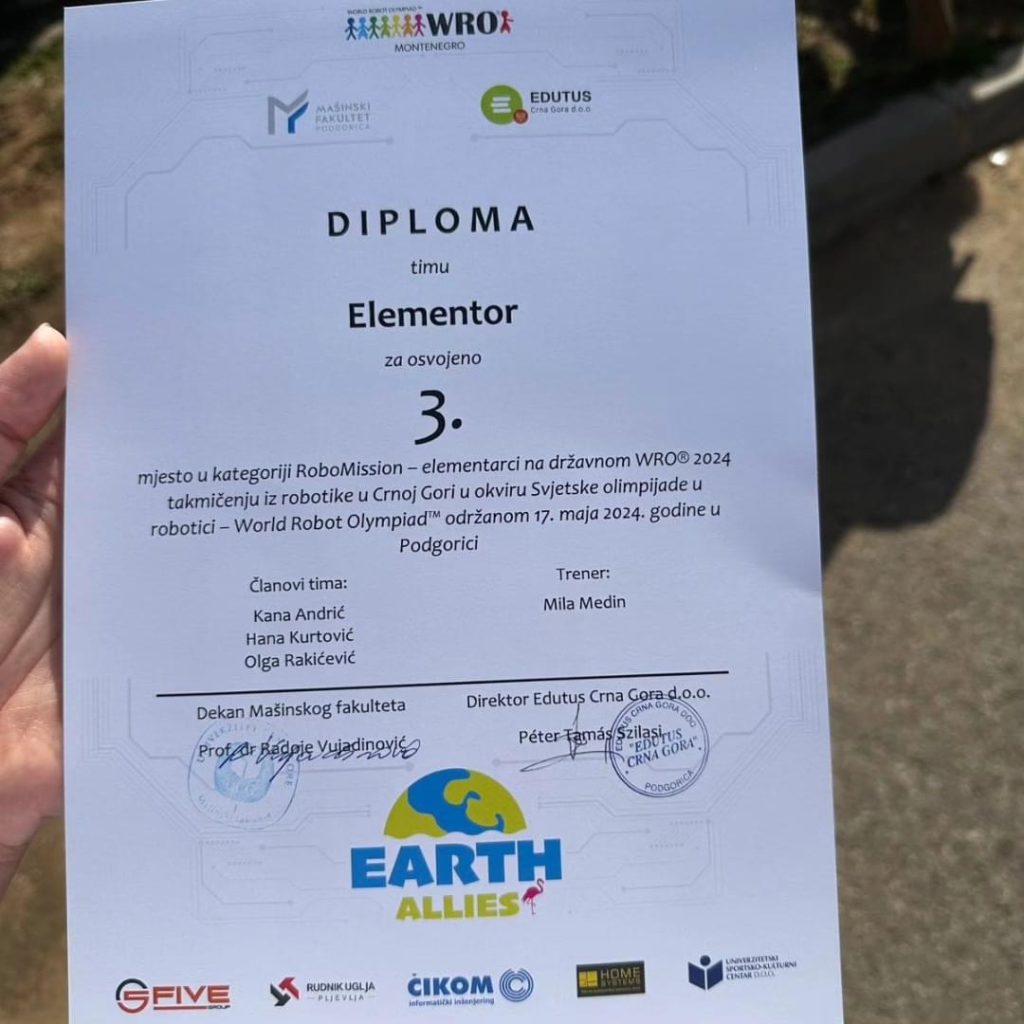 Naše učenice: Kana Andrić, Hana Kurtović i Olga Rakićević osvojile su III mjesto na Svjetskoj olimpijadi u robotici koja je danas održana u Podgorici.